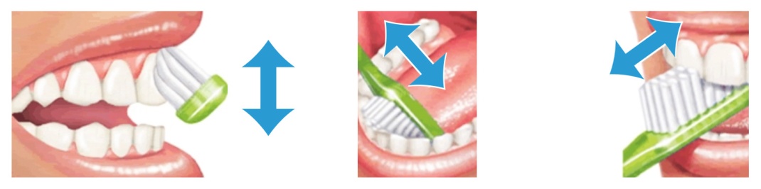 Un brossage efficace des dents ou couronnes sur implant doit toujours s’effectuer en allant de la gencive vers la dent (et jamais l’inverse) en veillant à brosser aussi bien la face interne qu’externe de la dent.